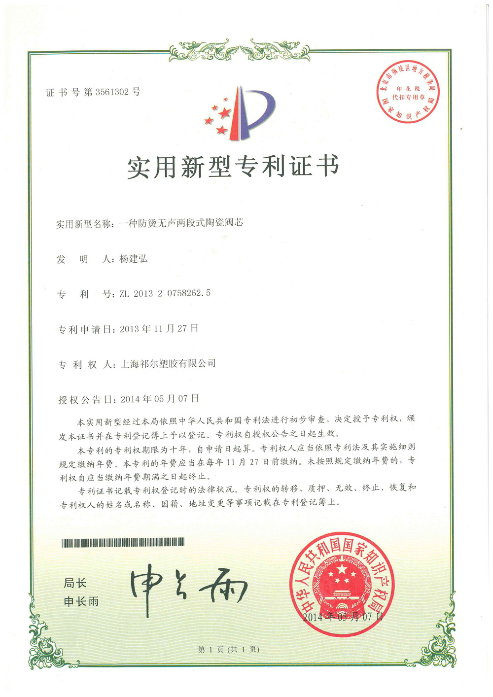 Anti-scalding silent two-stage ceramic valve core